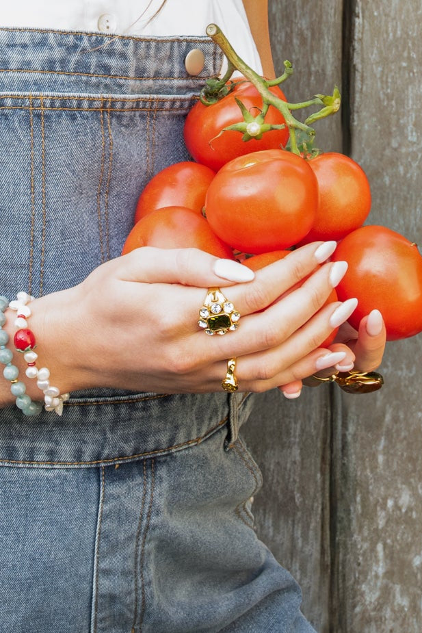 Deze gouden ring heeft een prachtig ontwerp met een groene steen in het midden, omringd door heldere stenen. Het is niet voor niets dat deze ring de naam van de collectie draagt, want wat een parel is dit. Een echte statement ring die direct opvalt en elke look een luxe uitstraling geeft.